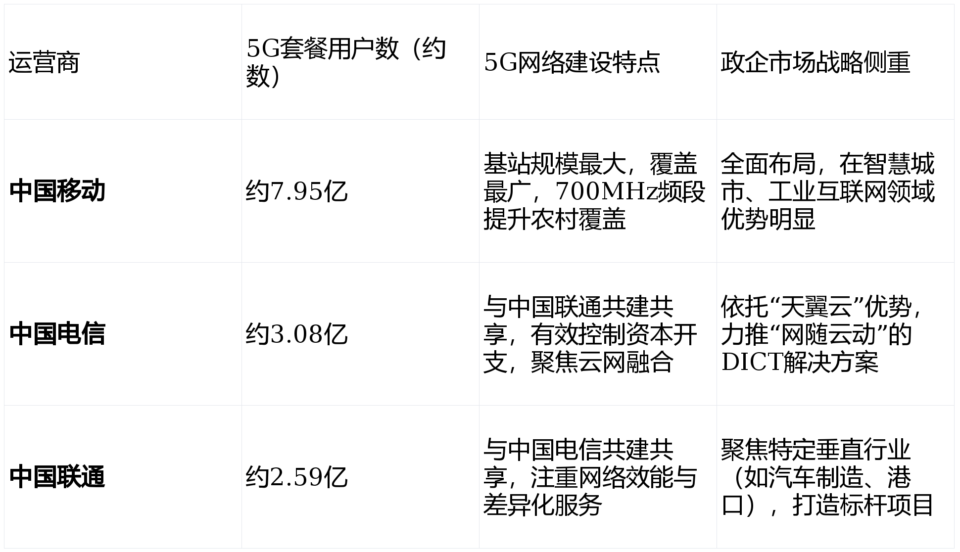 结论:运营商之间竞争已从单纯的价格战和用户争夺,演进为网络质量、云能力、生态整合与垂直行业解决方案能力的综合较量。